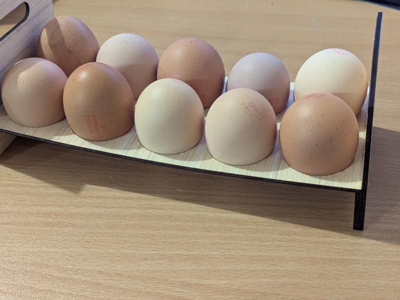 Cette version comportait simplement 2 côtés verticaux et une section avec les trous pour placer les œufs, pas de renfort en dessous.