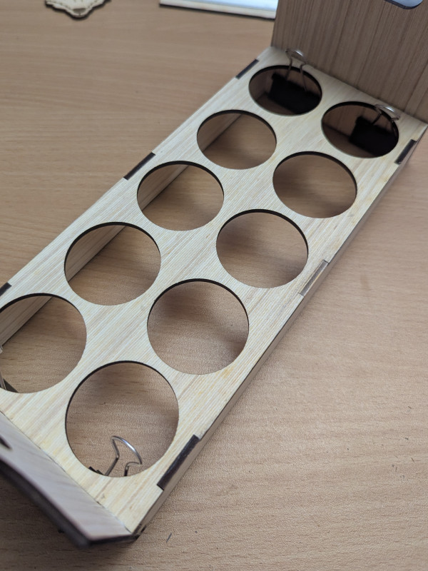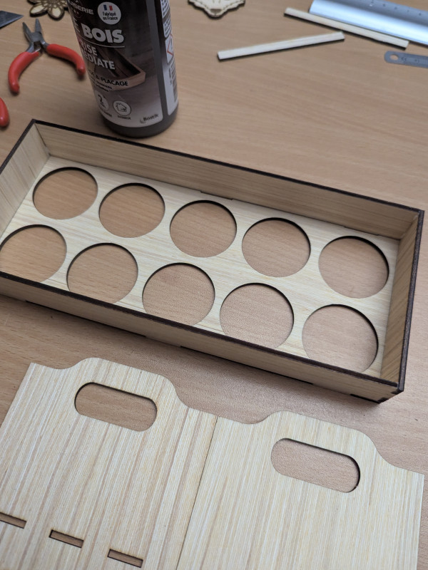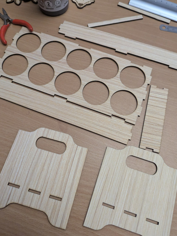 - Dur dur de créer des encoches et créneaux qui s’emboitent bien une fois la découpe faite (même en faisant attention aux dimensions dans XCS…)